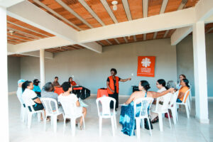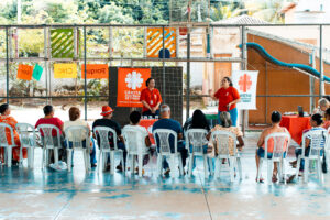 A atividade busca “refletir com as pessoas atingidas os conceitos de políticas públicas, participação social e mecanismos de controle social, para que possam compreender a importância da participação dentro dos espaços de decisão, seja nas comissões, nos conselhos de políticas públicas do município, ou em reuniões com as comunidades”, pontua Karina Leão, coordenadora da equipe de Saúde Coletiva e Proteção Social da ATI Cáritas Diocesana de Itabira.