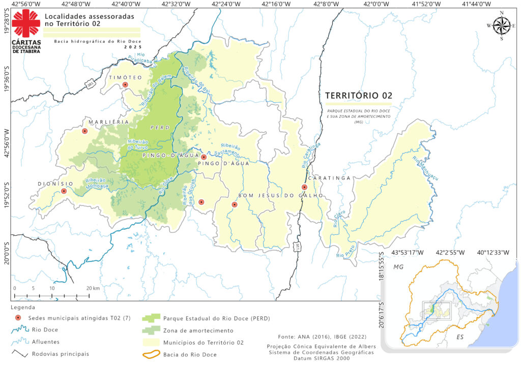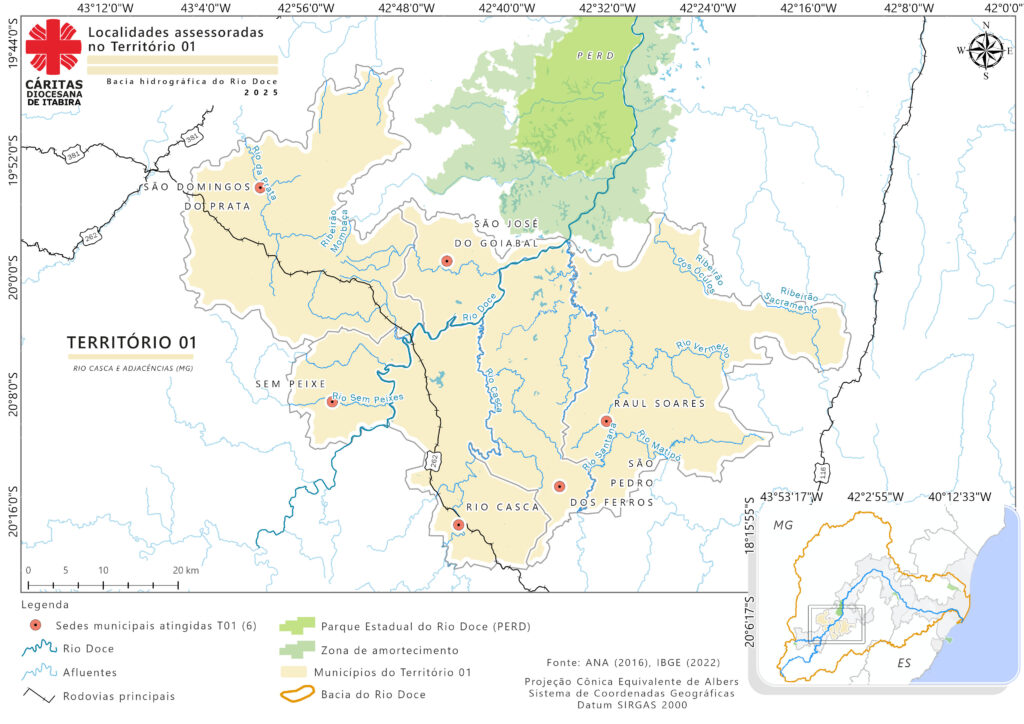 Nos territórios 01 (Rio Casca e Adjacências) e 02 (Parque Estadual do Rio Doce e sua Zona de Amortecimento), a Cáritas Diocesana de Itabira foi escolhida para prestar Assessoria Técnica Independente (ATI).